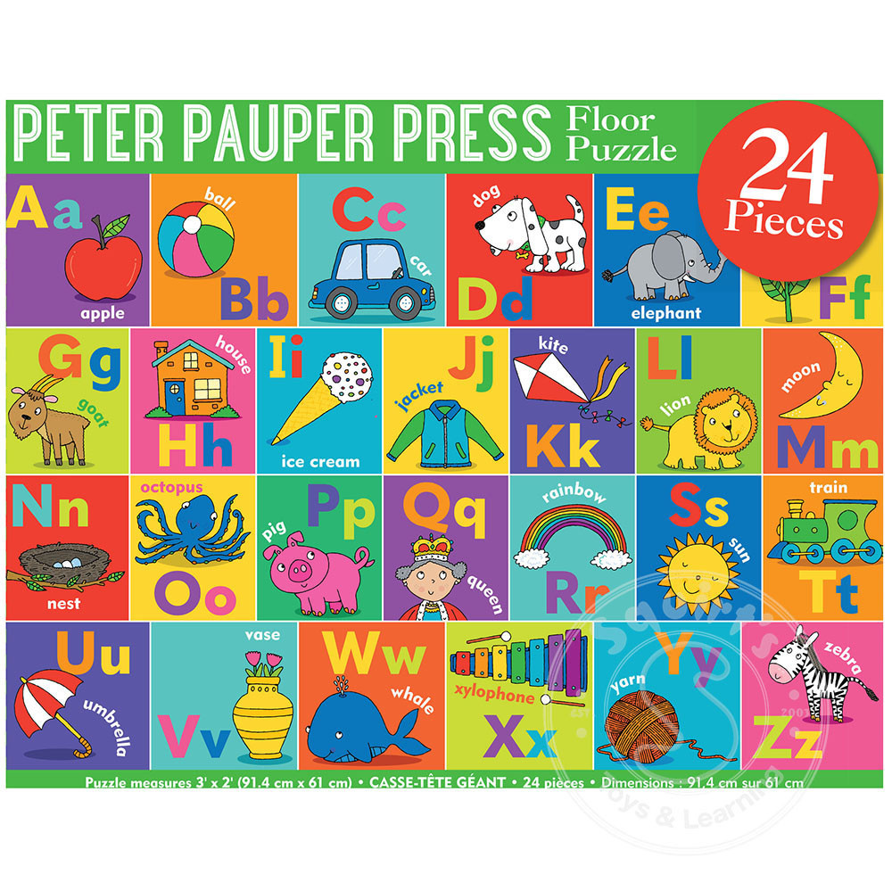 Let your kids have fun, learn, and be challenged by this colourful Alphabet Floor Puzzle! Precision-cut pieces fit snugly. Pieces are extra thick. Alphabet puzzle with both upper case and lower case letters.