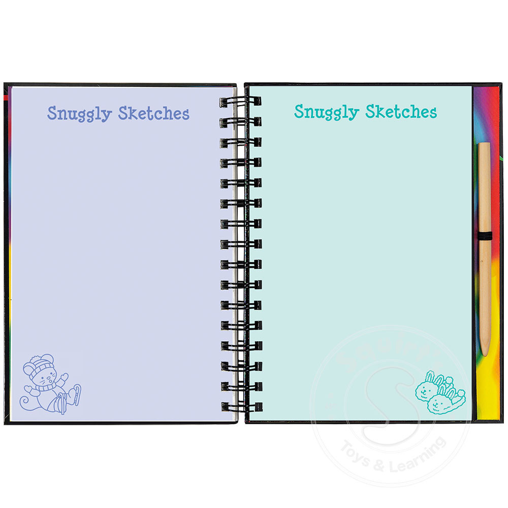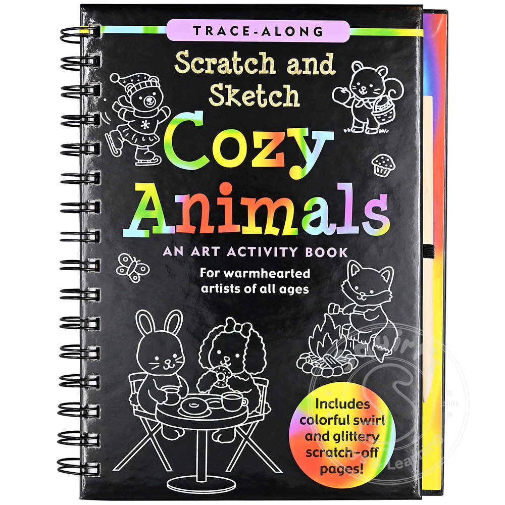 - Art activity book contains 20 black-coated scratch-off pages, 20 illustrated pages with fun text, and 20 extra pages for independent drawing.