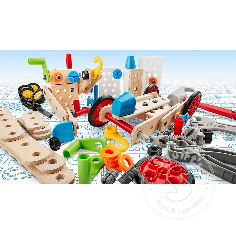 Builder Construction Set - Design and build your own constructions! With these components and tools you can build almost anything your mind can design. A fun way to practice hand/eye coordination and creative idea construction. Includes building pieces...