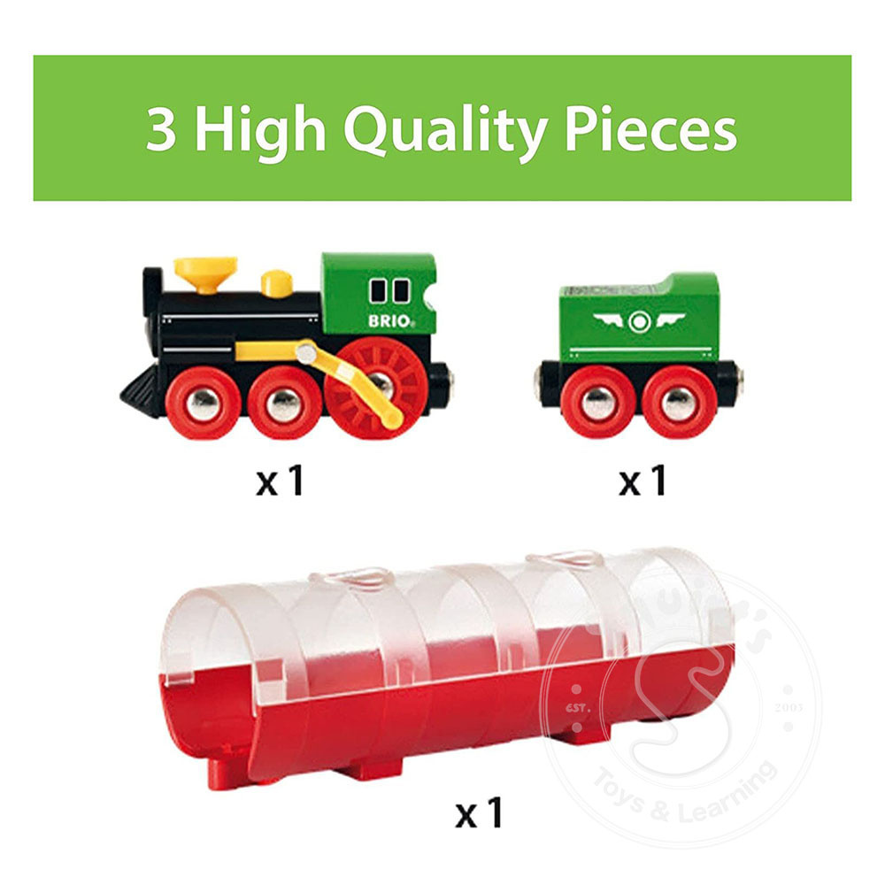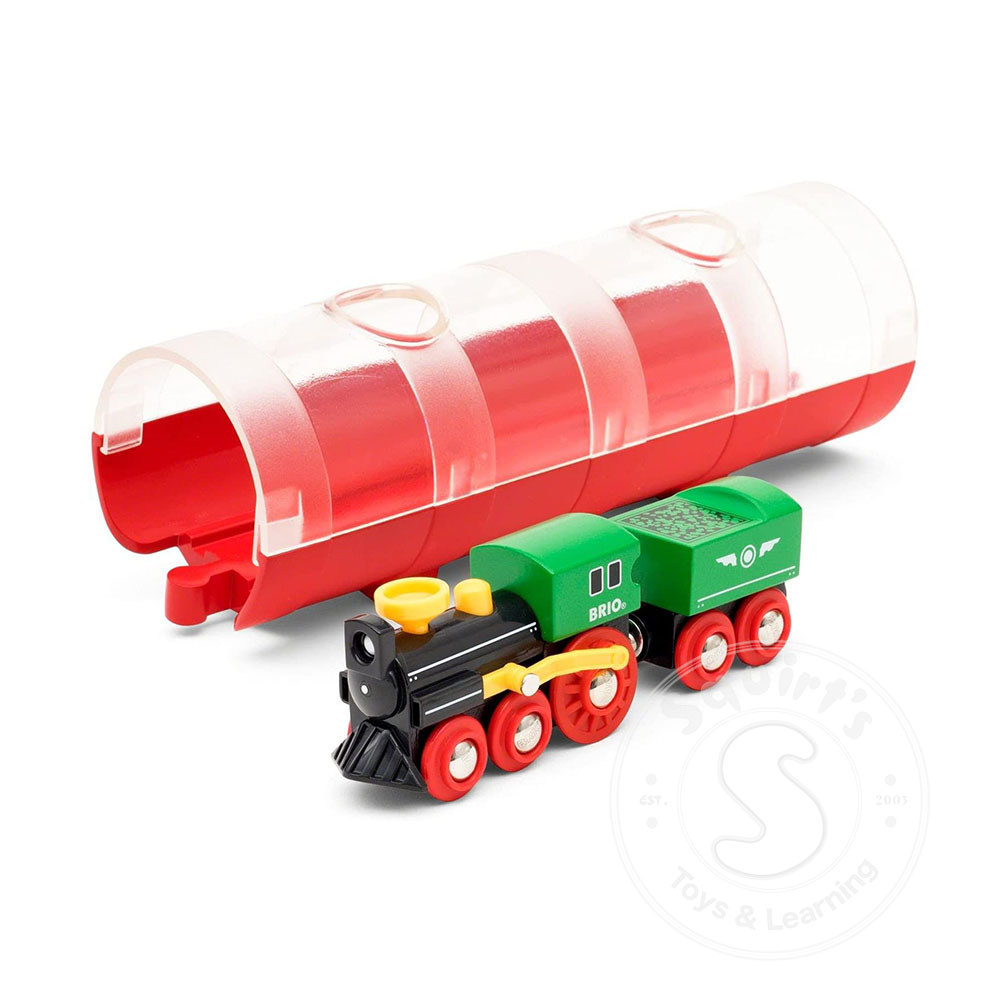 around the steam engine also transforms into a stylish see-through tunnel – just place it into any BRIO World track and your adventure can begin. Full steam ahead!