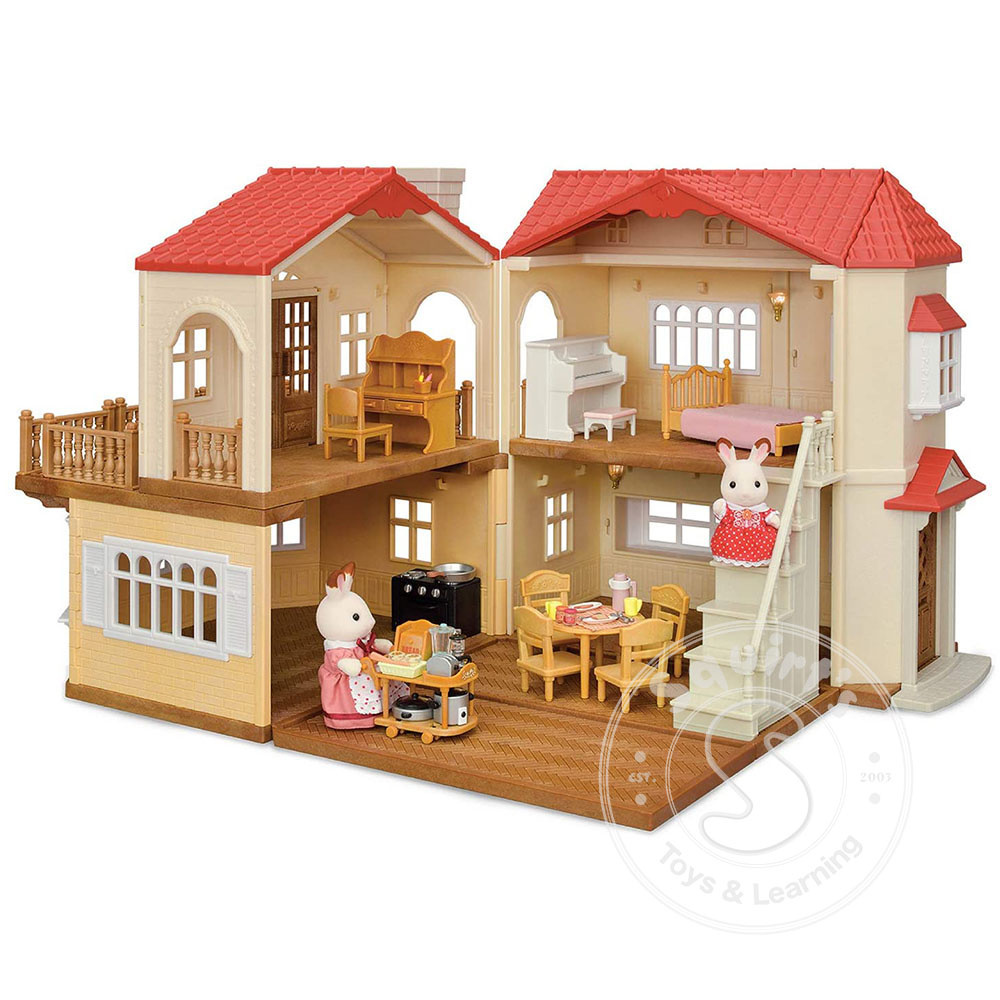 Red Roof Country Home Gift Set, the large, red-roofed Chocolate Rabbit Family home set, includes both figures and furniture. It can be opened up for play at 90-degrees, 180-degrees, and any angle in between. Closing up the house creates the appearance...