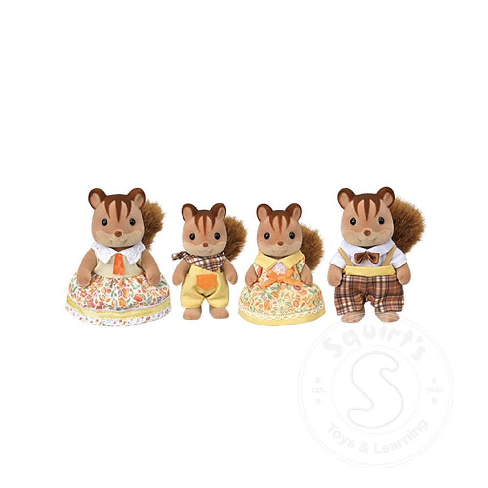 The Walnut Squirrel family have cute, fluffy tails. This set contains the father, mother, boy and girl. They are wearing lovely, yellow-themed outfits. The fabric clothing can be removed to change their outfits. Father, Cedric is an amazing carpenter...