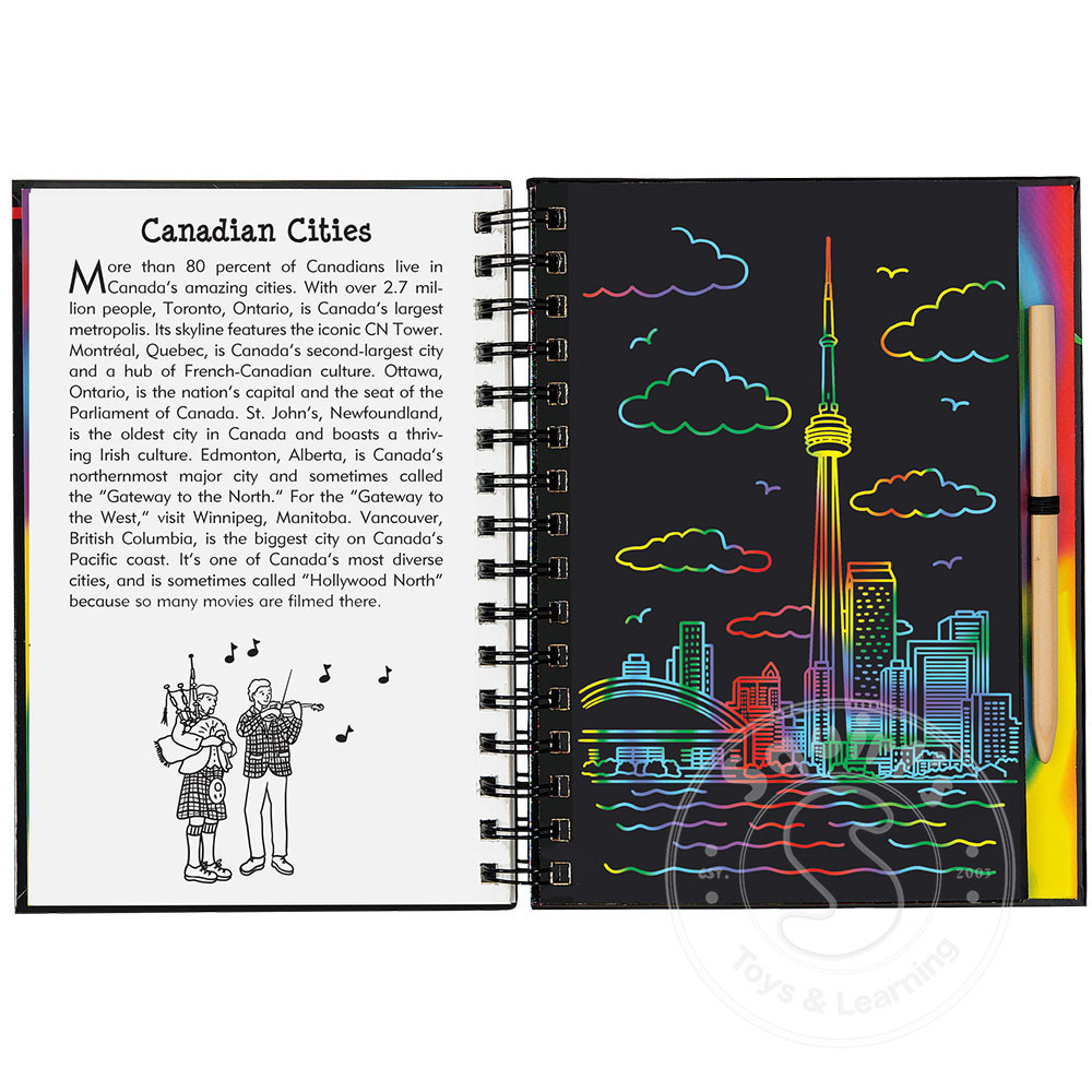 Scratch and Sketch your way across Canada! Meet the mighty moose, learn the history of lacrosse, and light up the Toronto skyline in silver sparkles!