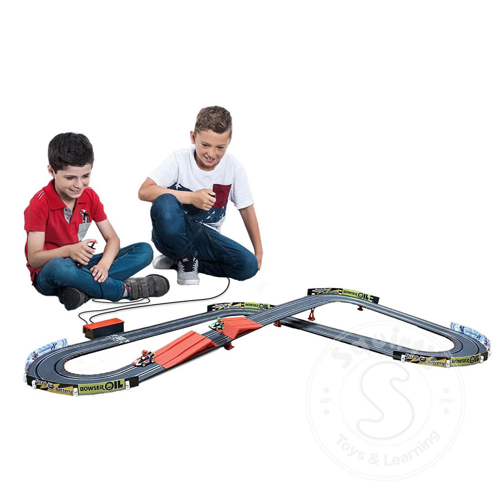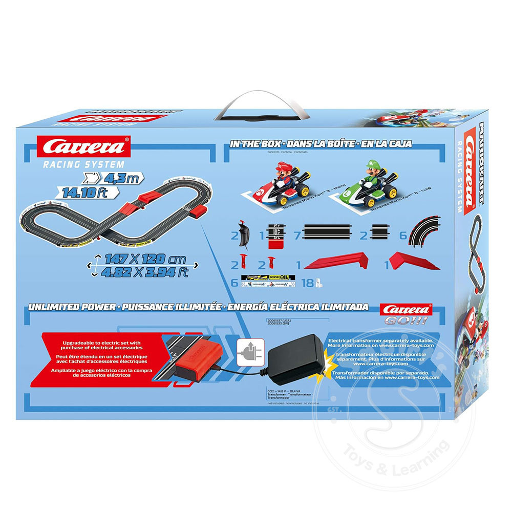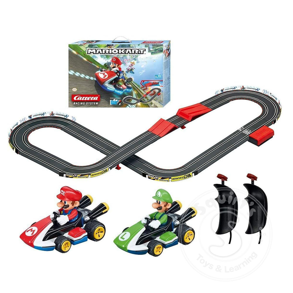 Race head-to-head with this battery powered slot car racing track set featuring your favorite Nintendo Mario Kart characters! Carrera battery technology allows you to race with the same power and speed as an electric Carrera GO!!! slot car racing set!...