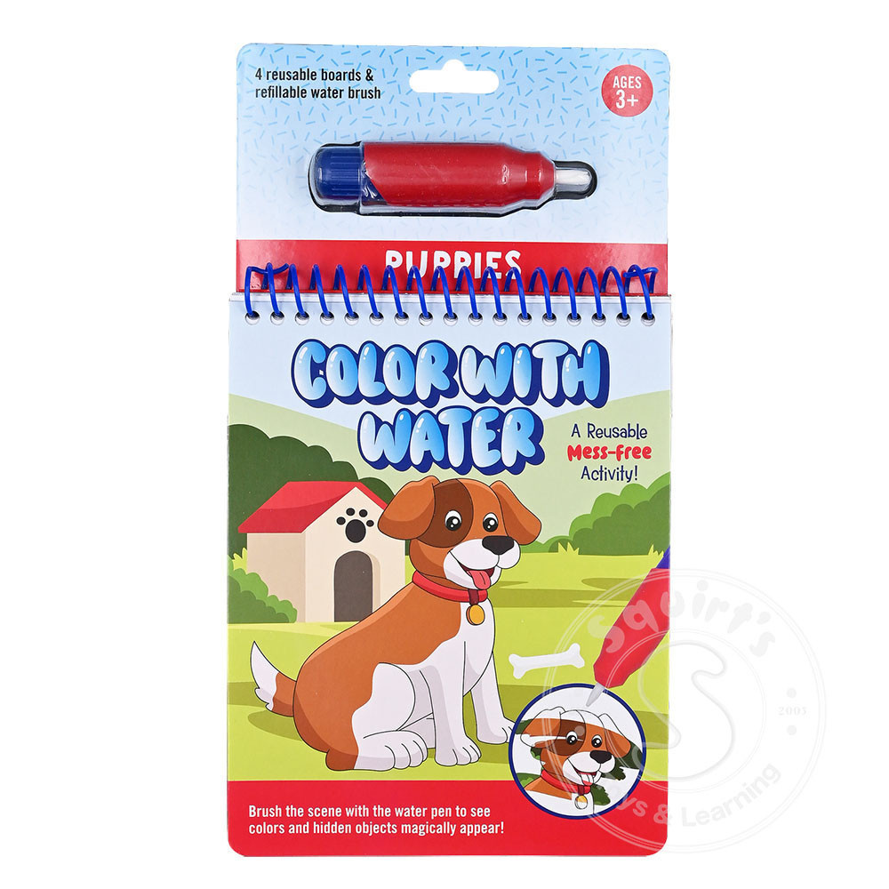 It's doggone fun with water art! This no-mess art and seek-and-find activity will delight kids and parents alike! Simply use the water pen included to brush each scene with water and watch as colors and hidden objects appear like magic!...