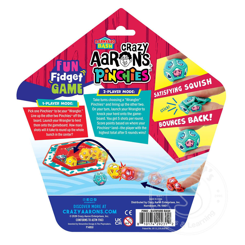 Take turns choosing a “Wrangler” Pinchies™ and lining up the other two. On your turn, launch your Wrangler to knock your herd onto the gameboard. You get 5 shots per round. Score points based on where your Pinchies™ land—the player with the highest total after 5 rounds wins!