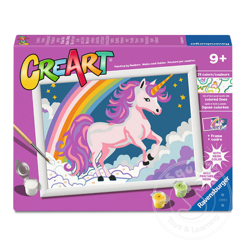 With Painting by Numbers from Ravensburger, children learn to carefully colour areas, improve their painting talent and develop fine motor skills. At the end there is joy, pride and a sense of achievement that awakens the desire to continue painting.