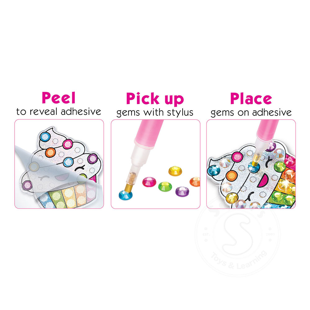 Diamond painting made simple! Larger gems, gem tray and stylus make this activity easy and fun to do for kids and beginners.