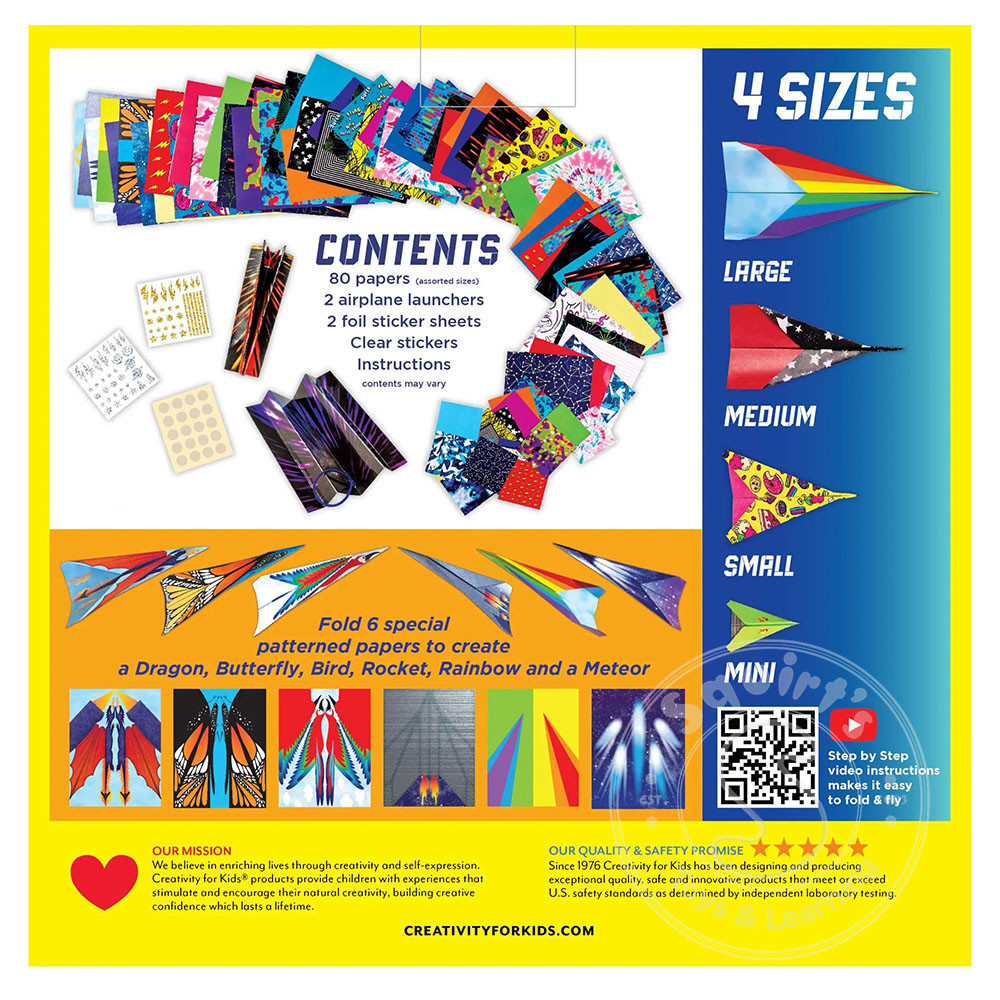 Bonus 6 special patterned paper sheets allow crafters to create a dragon, butterfly, bird, rocket, rainbow and meteor looking plane. Learn a new crafting technique with the paper airplanes for kids kit!