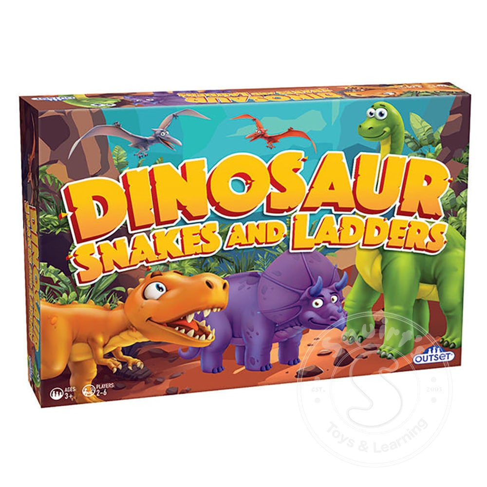 Dinosaur Snakes and Ladders requires no reading in the game (once you understand the rules). Simple game play with kids spinning the spinner and counting the number of spaces to move forward to reach the egg hatchling at the top of the board. ...