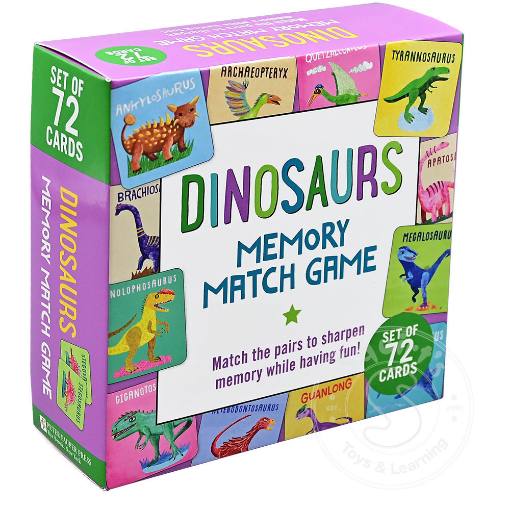 A childhood favorite made new again! Match pairs of dinosaurs with this colorful deck of 72 sturdy card tiles. Have fun and sharpen memories! How to play: Choose how many pairs of tiles to play with. Choose fewer pairs for younger players or...