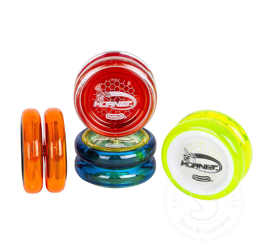 Introducing Hornet™! Designed for advanced looping tricks and competition play, Hornet™ is the latest and greatest in Duncan's ® line of high performance looping yo-yos. Featuring a perfect center to rim weight ratio for looping tricks, starburst...
