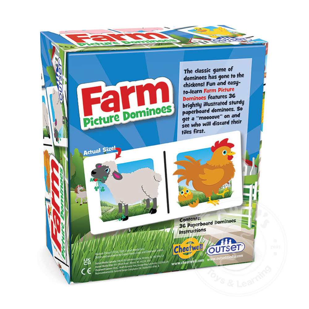 Picture Dominoes: Farm is a classic matching game for the young ones. Each game contains 36 brightly illustrated sturdy paperboard dominoes.