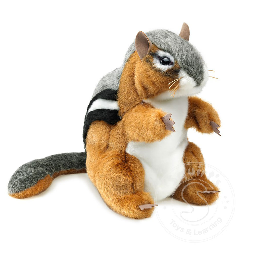 The Folkmanis® Chipmunk is an adorable wildlife puppet with pudgy cheeks, signature stripes and a bushy tail. Easy to animate with movement in head and all four legs, this woodland critter will tunnel to your heart.