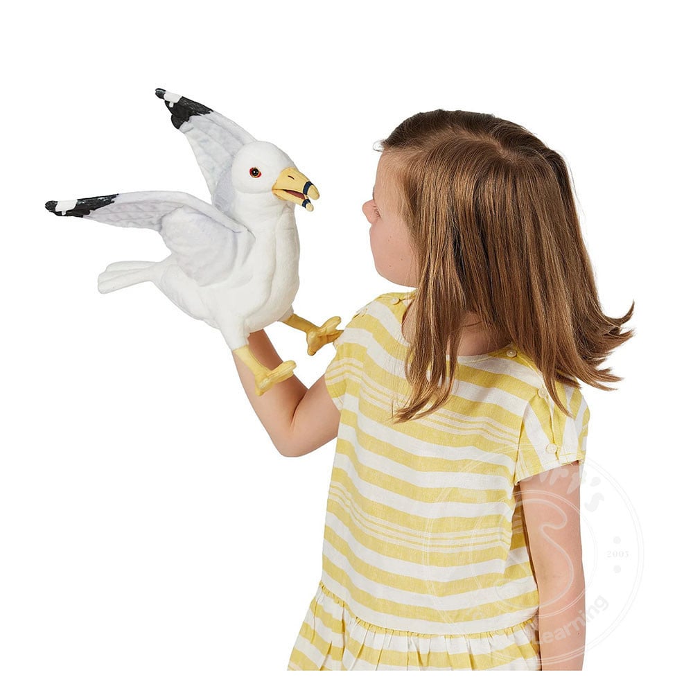 Found both at sea and on land, the inquisitive Gull (Seagull) puppet from Folkmanis lands ready to forage a snack. Bring to life this bird’s quirky personality with movable beak and flappable wings.
