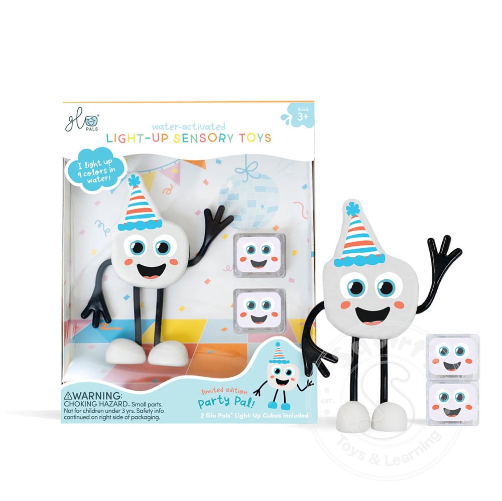Featuring bendable arms and colourful personalities, each Pal proudly illustrates the uniqueness in every child! Party Pal comes with 2 Glo Pals Light-Up Cubes included in the box!