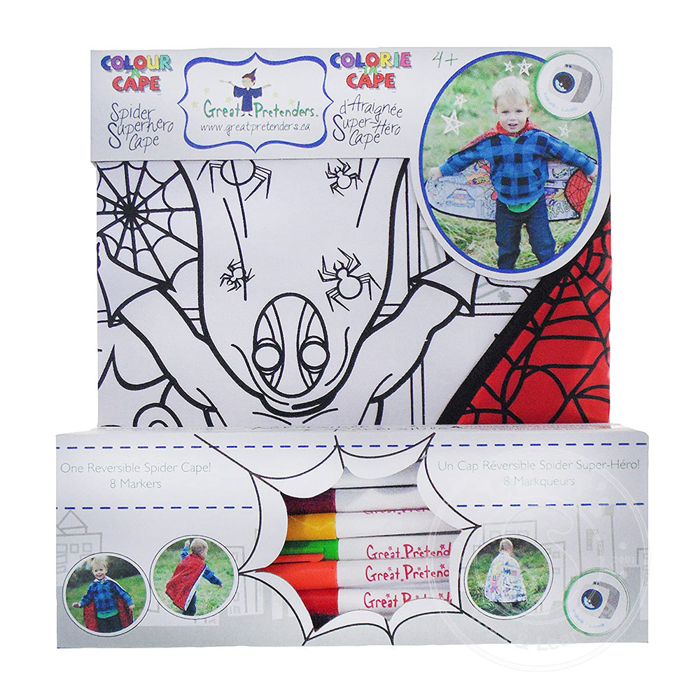 Every hero needs a cape! The Colour-A-Cape Spider Superhero is the perfect addition to your crime-fighter's wardrobe. Save the day or defeat monsters in the backyard with personalized style and flair! With 6 markers to colour with, your little ...
