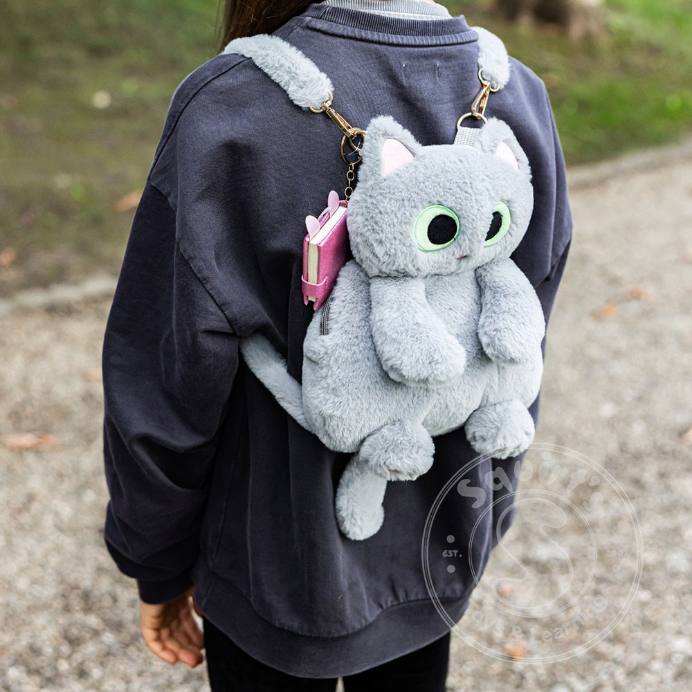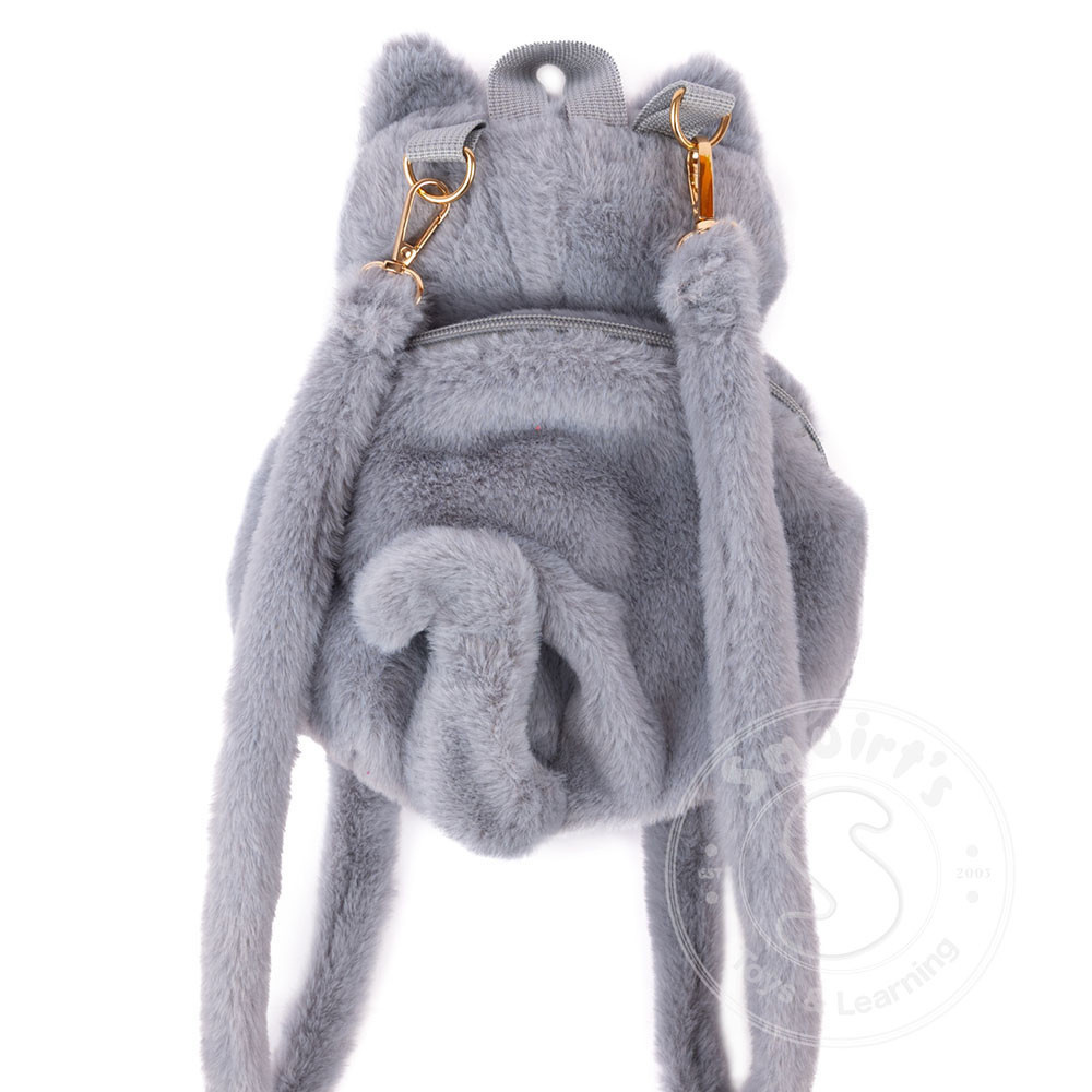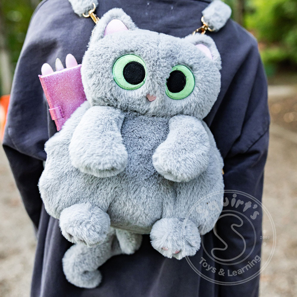 Cuddle up to adventure with our Cutie Kitty Backpack! This plush grey cat backpack features adorable green eyes, soft ears, and cute little paws and legs for a huggable look that goes everywhere you do. With furry, comfortable straps and...