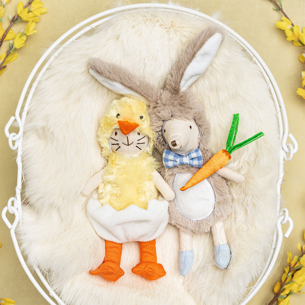 Another new addition to our mini dolls; Henrietta the Chicken Kitten! Henrietta is a 7" kitten doll in a chicken costume. She wears a furry yellow chicken hat, with a chicken vest and sits in an egg. She is just the doll you need to add to this...