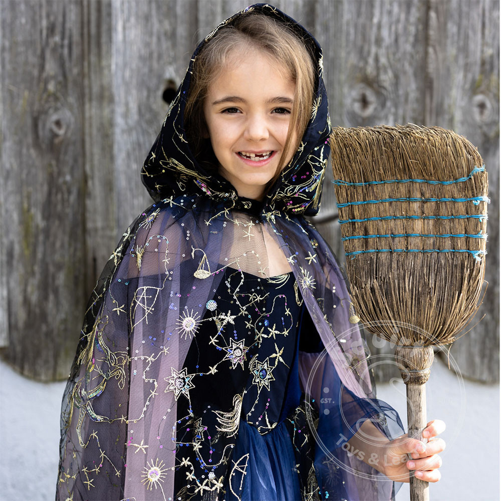 A roomy hood adds an air of mystery and magic, while a secure velcro closure at the neck makes it easy to slip on and off. Whether they're casting spells, chasing fireflies, or simply playing pretend, this cloak wraps your child in twilight wonder.