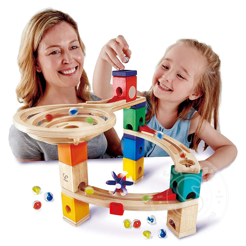 Hape Quadrilla is a high-quality wooden marble run construction system. It provides quality time for the whole family to play together. The best gift for your loved ones. All Quadrilla marble run sets are crafted with heirloom quality birch and rubber wood for long-lasting marble racing fun. Hape Toy finishes are all non-toxic, child safe and of the highest quality. Hape constructs their toys using FSC accredited wood products.