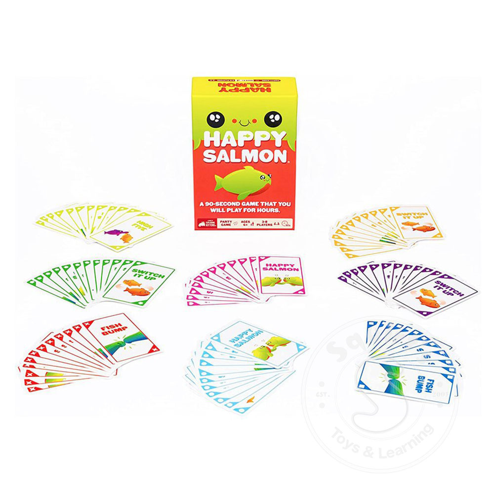 Originally designed by Ken Gruhl and Quentin Weir, Happy Salmon has been reimagined by Exploding Kittens with new artwork and updated rules.