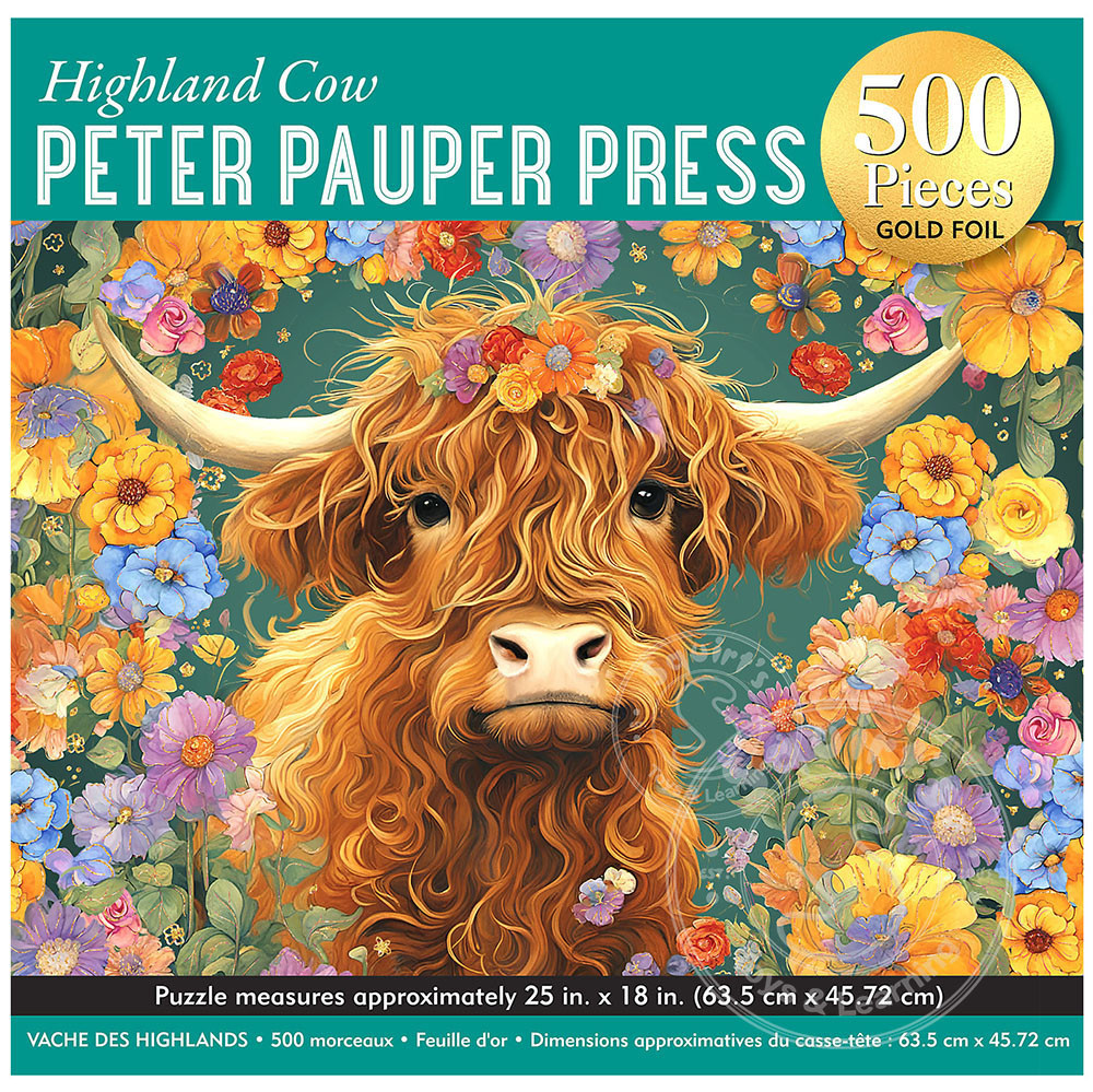 Be challenged and charmed by this 500-piece puzzle, featuring one of Scotland's adorable Highland ''hairy coos!'' Watch this vibrant image come together, piece by piece! 500 precision-cut pieces fit snugly. Linen-textured surface reduces glare...