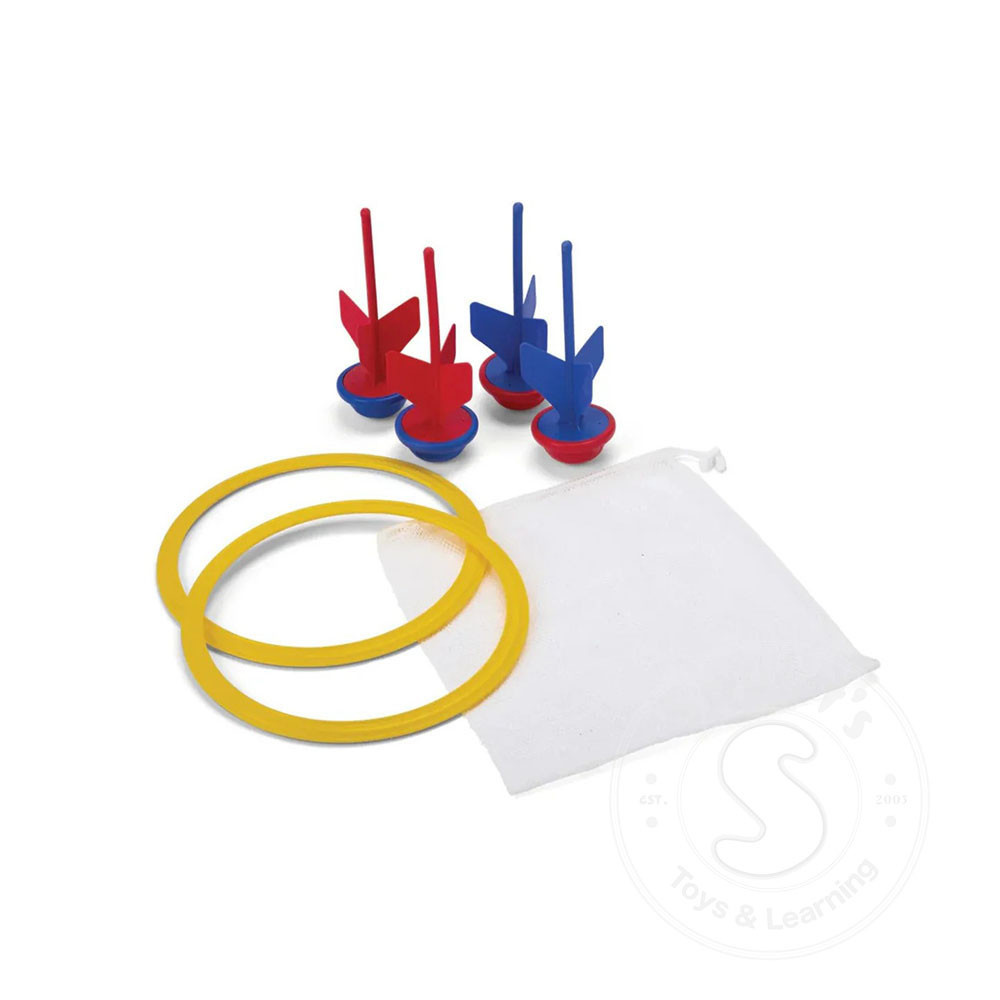 A kid-friendly version of the classic lawn darts game which is great for kids & adults alike. Perfect for the backyard, the beach, a park or anywhere else you want to play. Includes: 4 soft tip darts, 2 target rings and a zippered mesh storage bag...