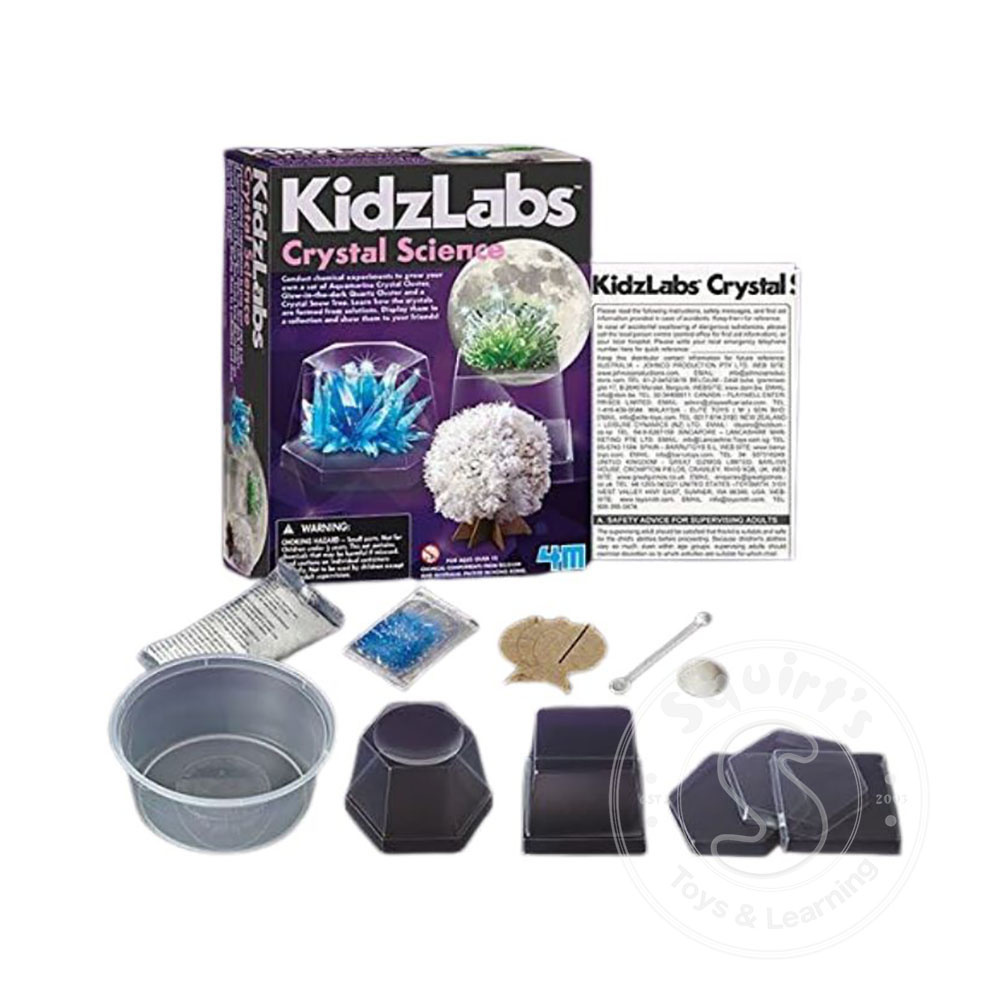 Learn how crystals form from different solutions as you grow your own set of aquamarine crystal clusters, moon crystal clusters and a crystal tree! Approximate size of crystal tree when completed: 2.75” diameter X 3.1” H. Ages 10+