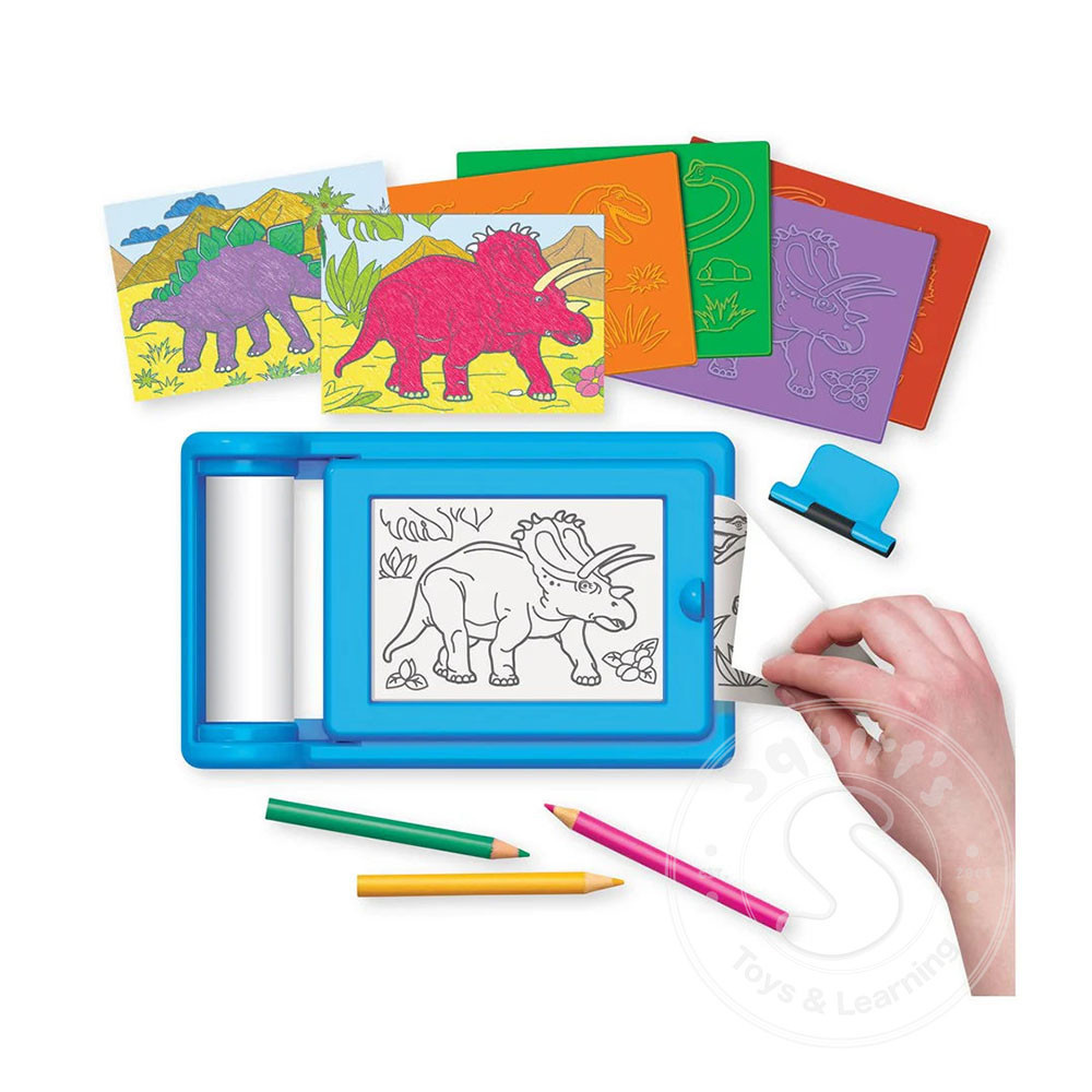 A Dino-themed take on a classic art activity! Place any of the 4 double-sided dinosaur templates into the base, then use the included pencil crayons to rub out the image of your dino on the included roll of paper (8m in length). When you’re done...