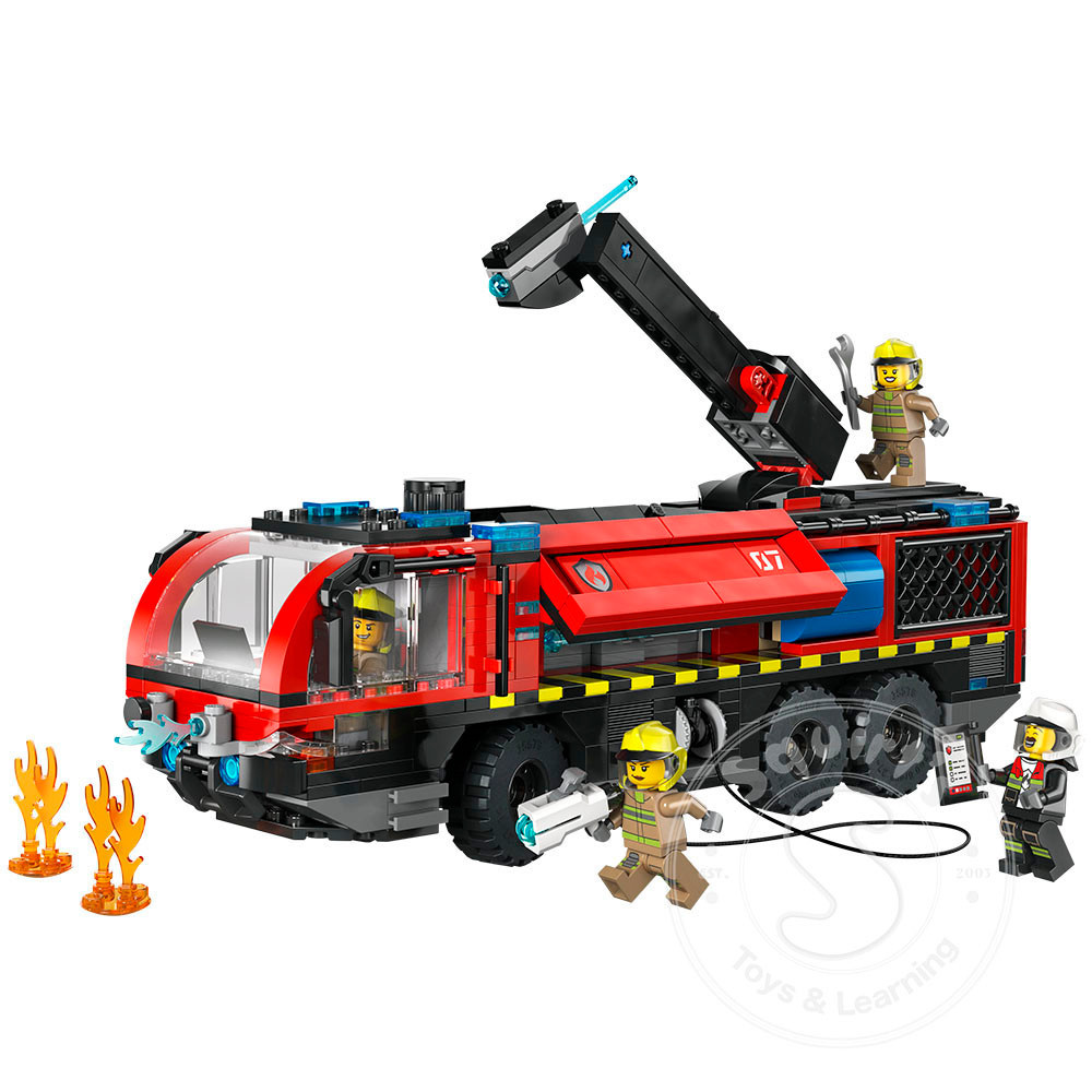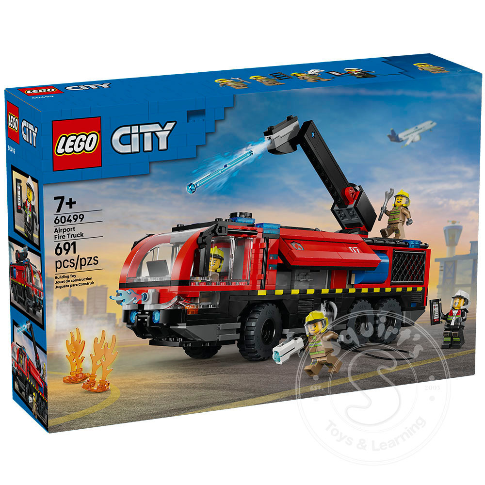 Mobilize the LEGO® City Airport Fire Truck (60499) for kids ages 7 and up. This realistic emergency vehicle toy features a 360° rooftop extinguisher, opening side equipment bays and tool storage compartments. Kids can turn a dial to steer the truck,...
