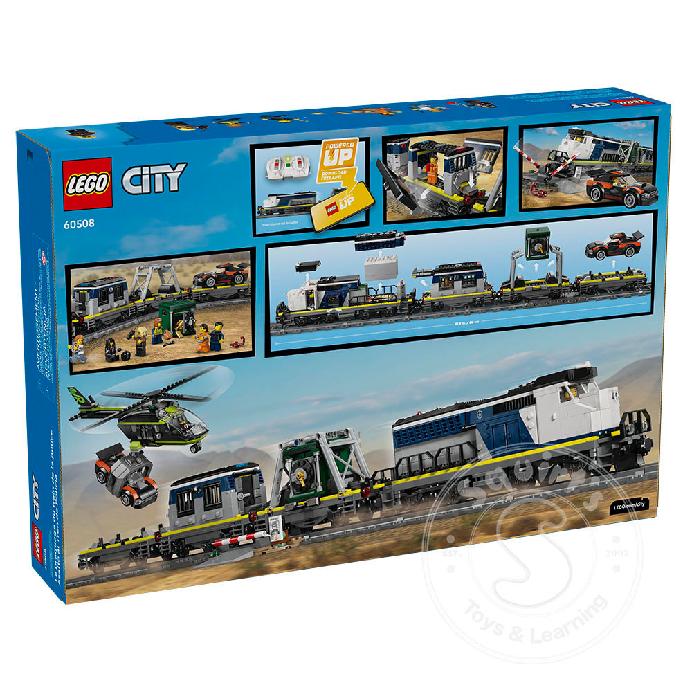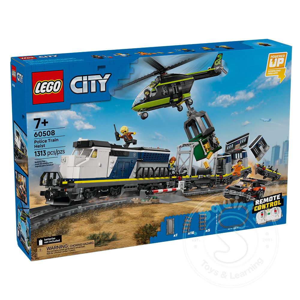 - TOY TRAIN POLICE PLAYSET – The LEGO® City Police Train Heist (60508) building kit features a motorized train, plus a helicopter, rally car, tracks and 6 minifigures for imaginative play