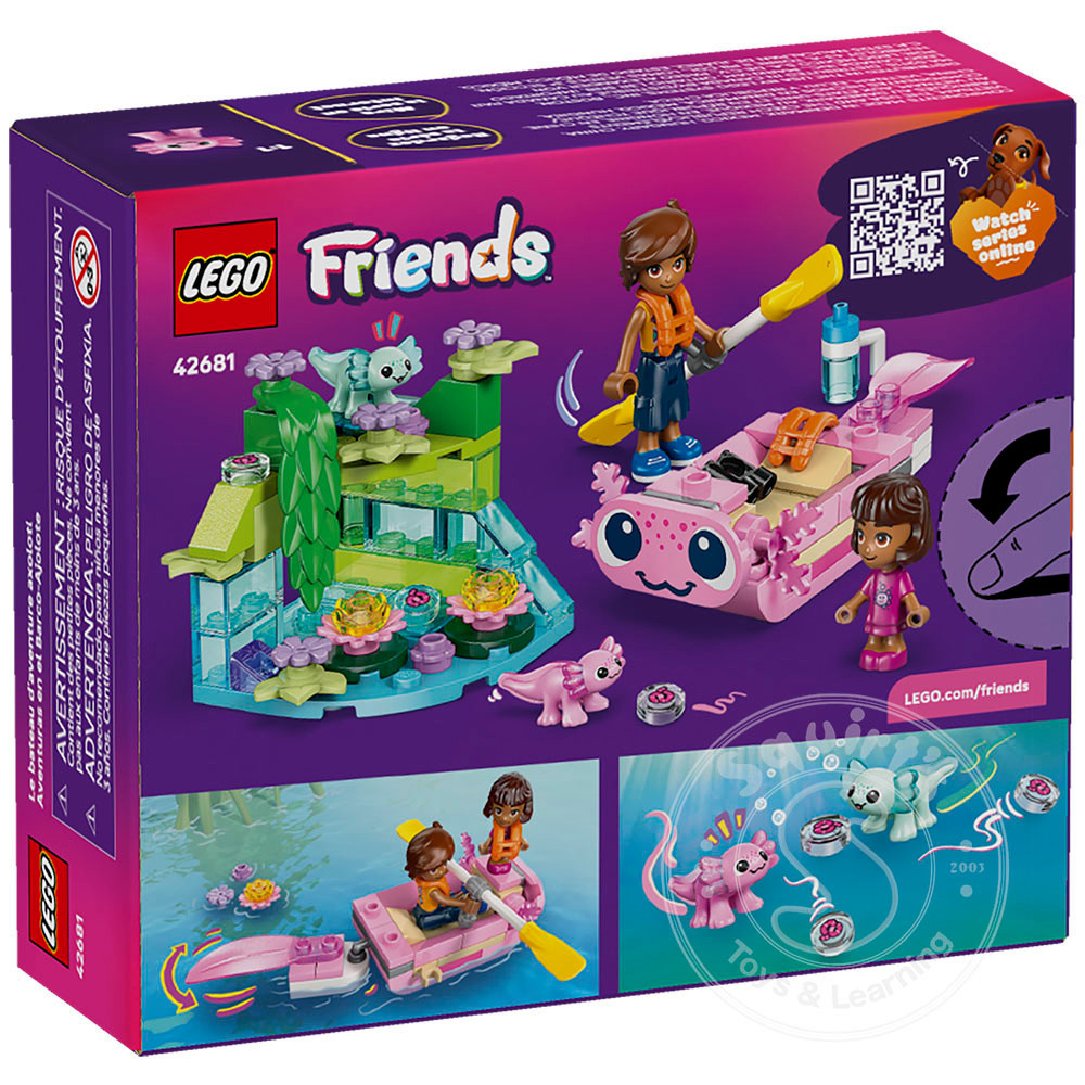 AXOLOTL TOY BUILDING SET – This kids’ LEGO® Friends Axolotl Adventure Boat (42681) includes a mini boat, 2 characters and 2 mini axolotl toys, launching fun play for girls and boys ages 5 years and up
