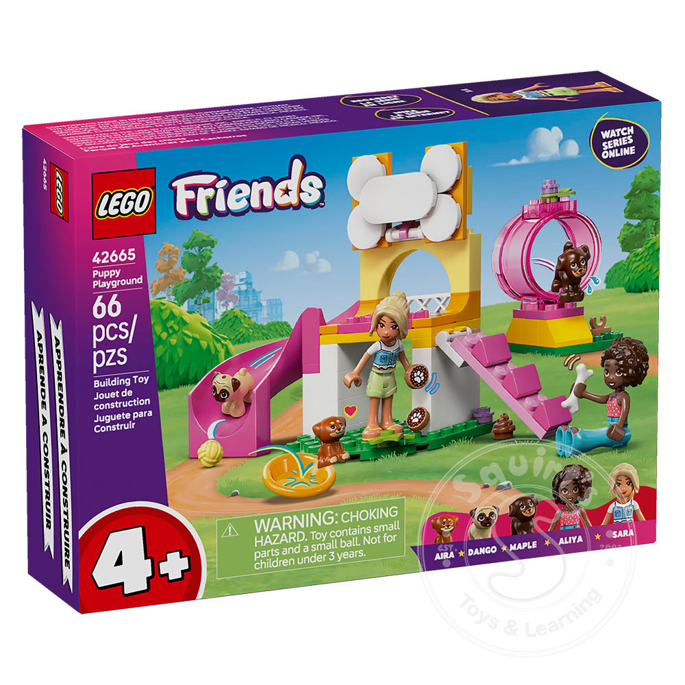 - Building kit packed with puppy power – This kids’ LEGO® Friends Puppy Playground for girls and boys aged 4 and up features a buildable playground, 2 mini-dolls, 3 dog figures and accessories