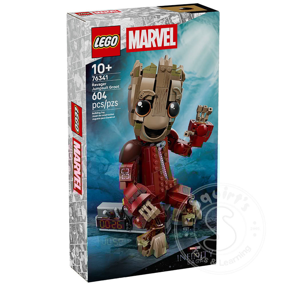 - DIMENSIONS – The LEGO® ǀ Marvel Ravager Jumpsuit Groot in this 604-piece building set stands over 10 in. (25 cm) tall