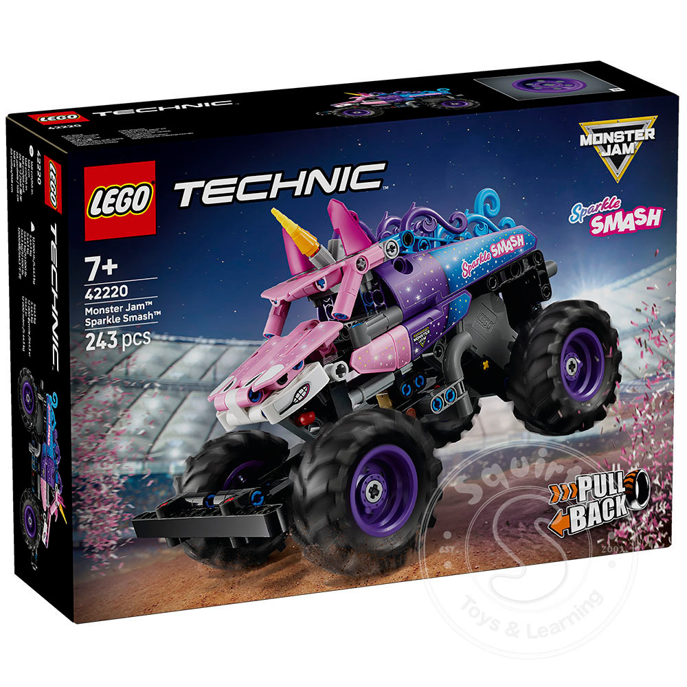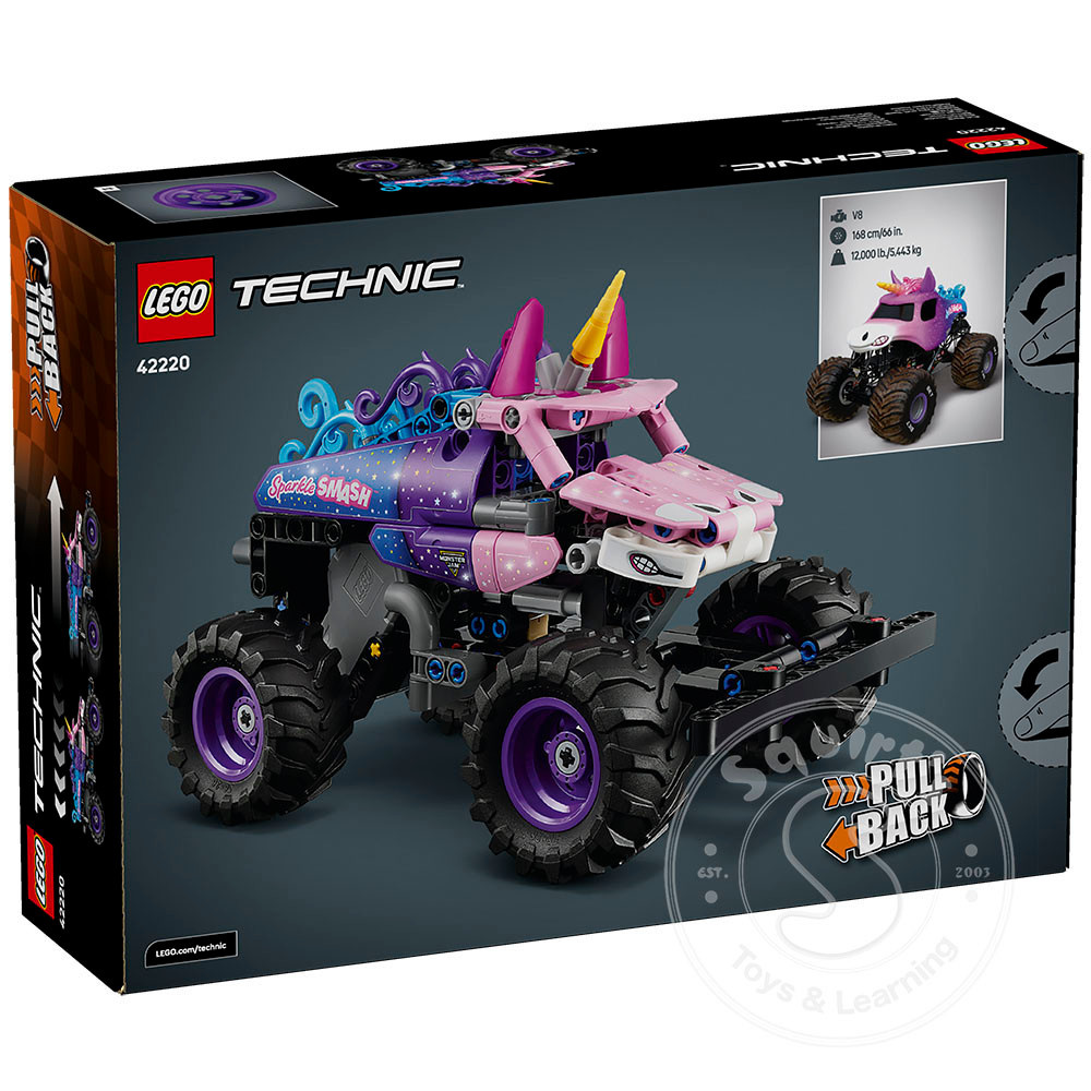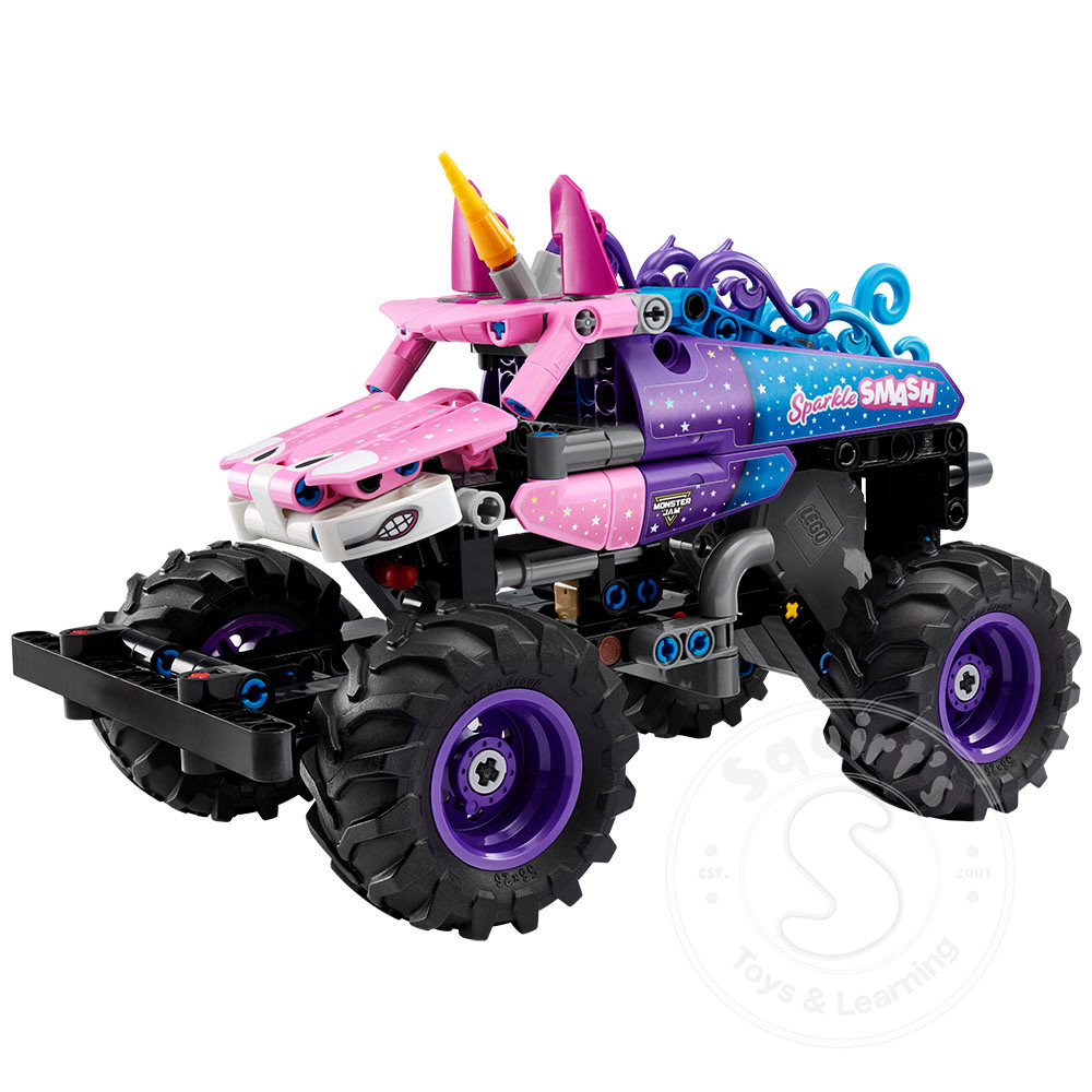 - MONSTER JAM™ BUILDING TOY – The LEGO® Technic™ Monster Jam Sparkle Smash™ Pull-Back truck (42220) offers hours of play for boys, girls and kids ages 7+ who enjoy monster trucks and unicorn toys