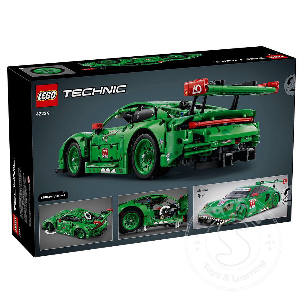 Kids can take control using the steering knob on top, then check out the working suspension on all 4 wheels, the rear wheel drive with differential, 6-cylinder boxer engine with correct firing order, opening doors and trunk and synchronized air jacks. And with its fierce T. rex-themed livery, this model looks just as awesome on display as it does on the racetrack. This set makes a fun gift for dinosaur fans and car enthusiasts. LEGO Technic sets feature realistic movements and mechanisms that introduce young LEGO builders to the universe of engineering in an approachable way. Kids can build with confidence using the LEGO Builder app – zoom, rotate in 3D and track progress with easy-to-follow digital instructions. Set contains 1,313 pieces.