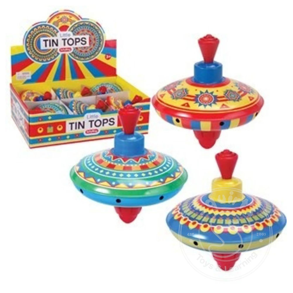 Spin the top and listen to them hum! These colourful tin tops are fun for everyone!