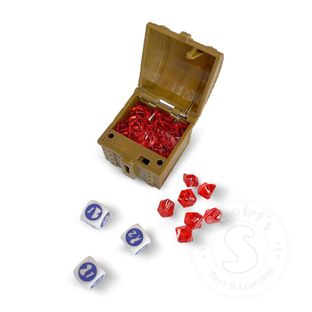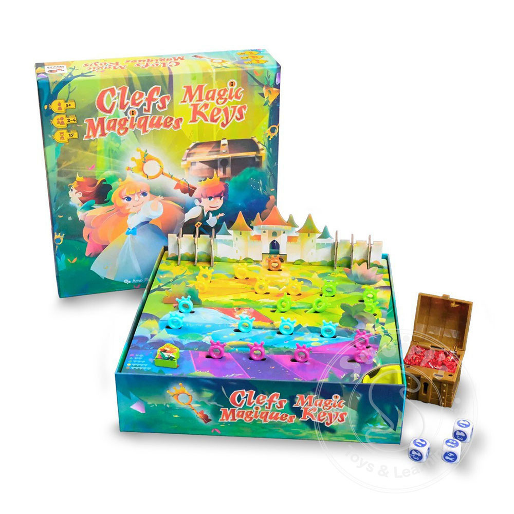 A push-your-luck game in search of the magic keys that will open the treasure chest! Each player, in turn, rolls the three dice and sets aside those with the moon symbol. They choose the value of one of the remaining dice and move their game piece...