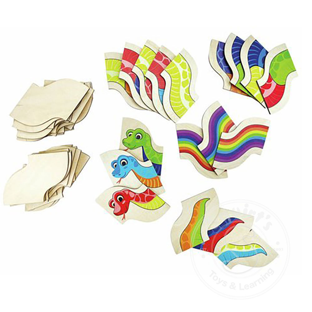 arranging them on the snakes. Long, colourful snakes can be created, and colour recognition is playfully encouraged.