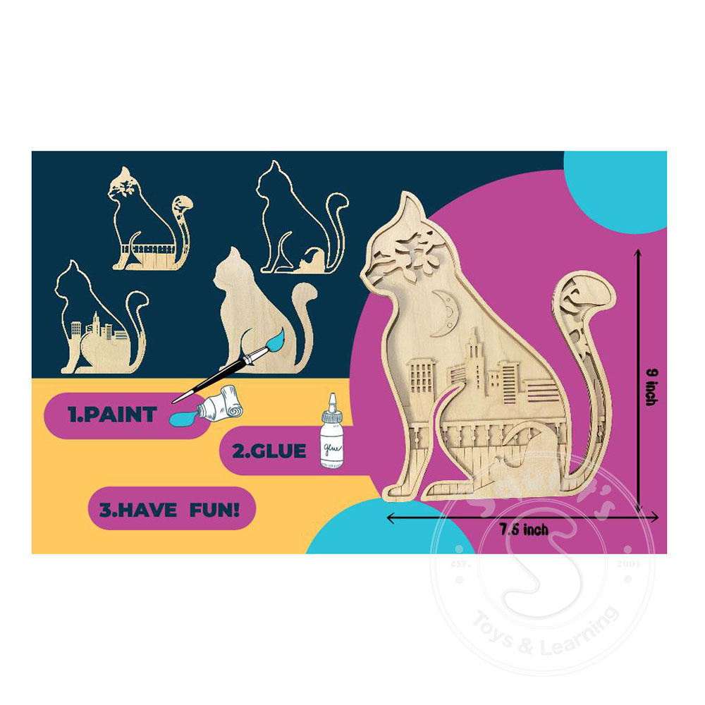 Brand New Multi layer 3D Cat art kit. This ready to assemble kit that comes with paints, brushes, wood glue and colourful instructions. Laser cut and packaged locally by the team at McTavish Academy Of Art in North Saanich, BC...