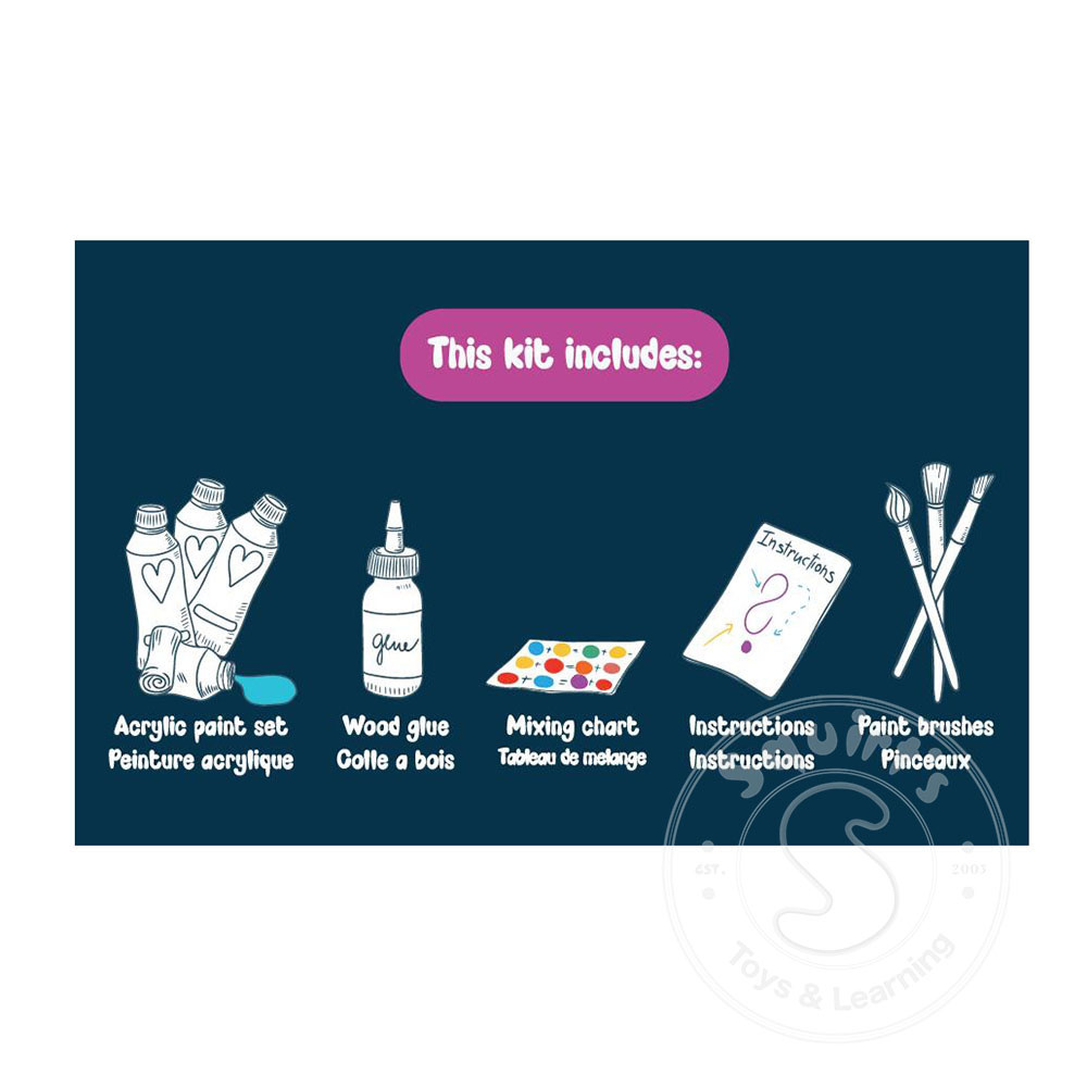 – 8 acrylic paints included (.35oz each colour)