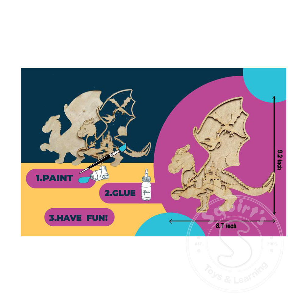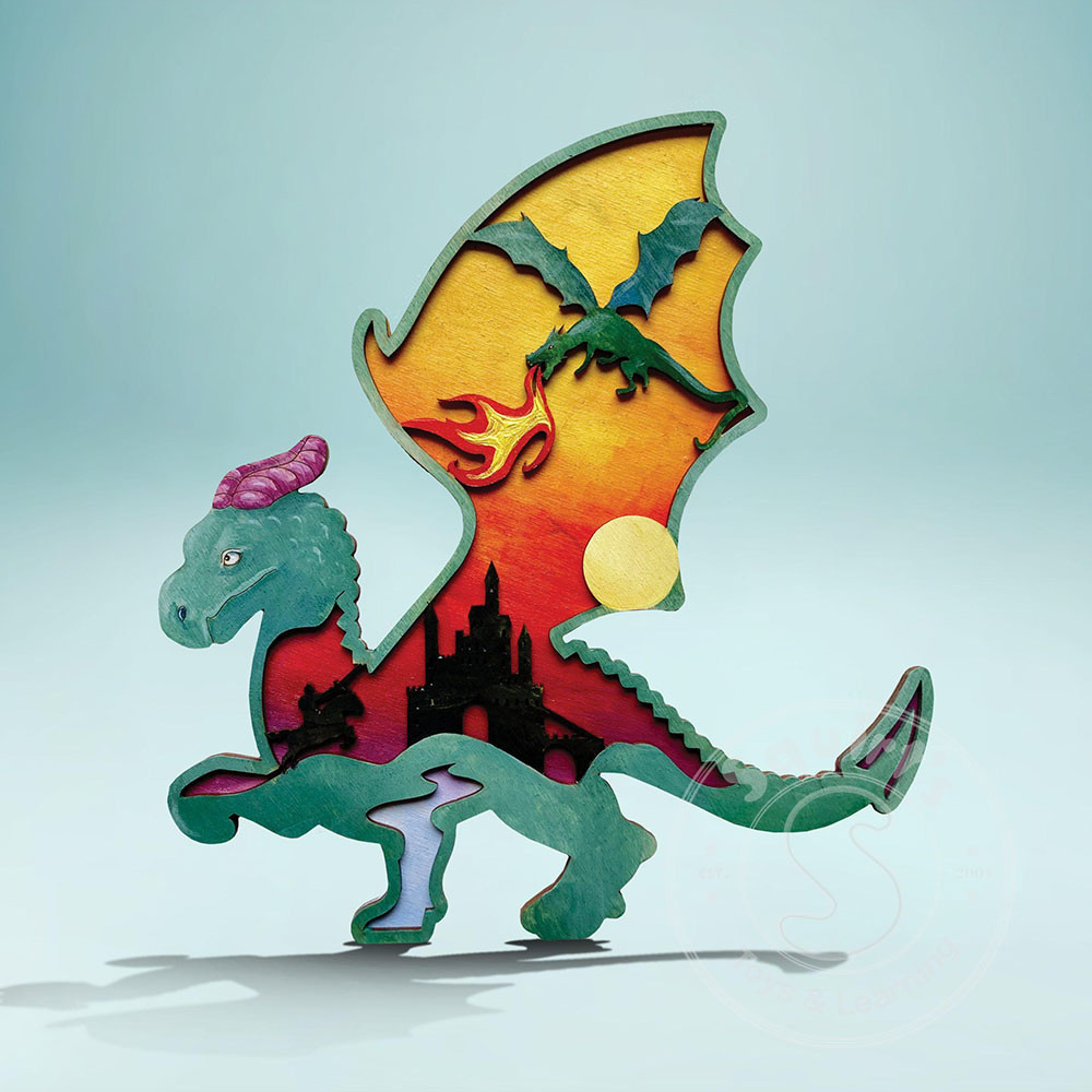 This fire breathing dragon 2 layer art kit is a the perfect started kit for little artists. This art kit was designed, laser cut and packaged in house by the team at McTavish Academy Of Art on Vancouver Island, BC...