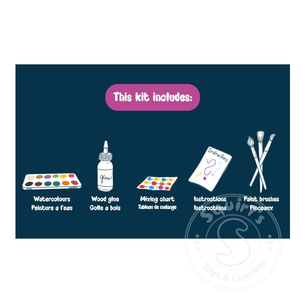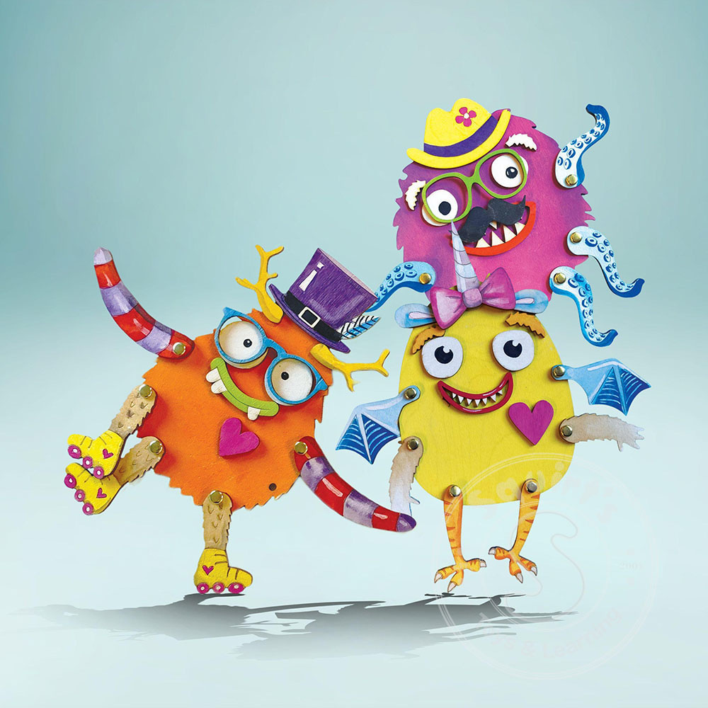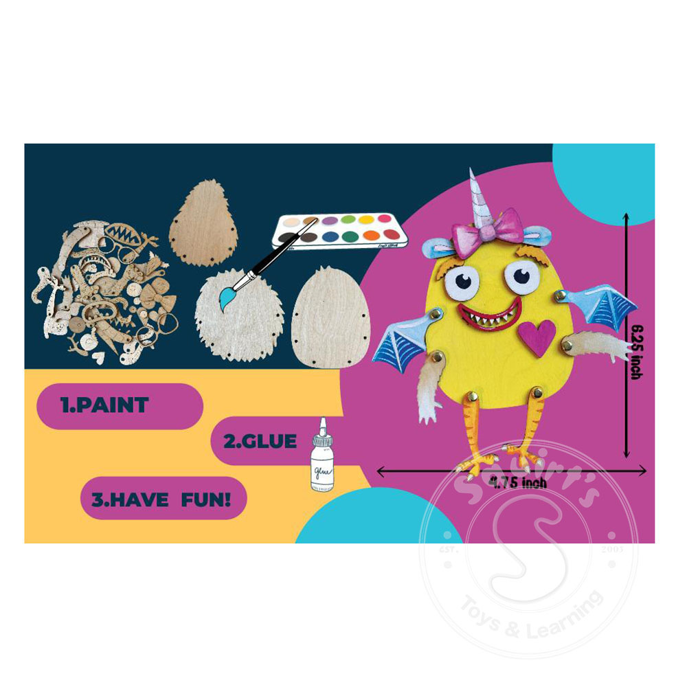 Mix & Match to create unique monster designs. 3 Monster bodies and over 30 parts. Paints, brushes, wood glue and step by step instructions included. Laser cut and packaged locally by the team at McTavish Academy Of Art in North Saanich, BC...