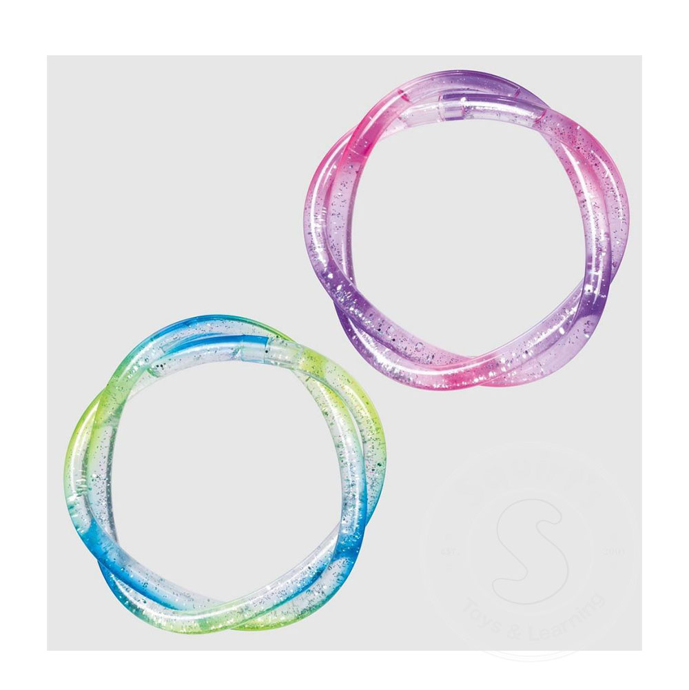 What every little girl wants !! Colourful twisty bracelet filled with shimmery glitter. Jewelry fit for any sea maid. Includes two bracelets. Fits most wrists. Assorted colours
