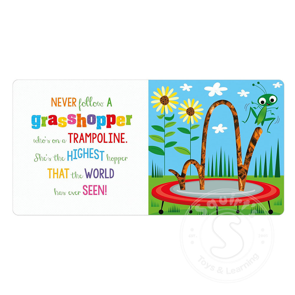 Never follow a spider . . . unless it's in this book! Children will love meeting the funny insects in this hilarious book. Have fun tracing the touch-and-feel trails to mimic following each bug. With fun, rhyming text & awesome illustrations from Stuart..