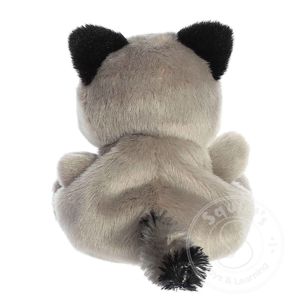 Rascal Raccoon is a plush toy with a light gray body and distinctive black markings around the eyes, giving the appearance of a raccoon's mask. Rascal has a white snout with a small black nose, and cute little rounded ears, adding to the playful and mischievous look.
