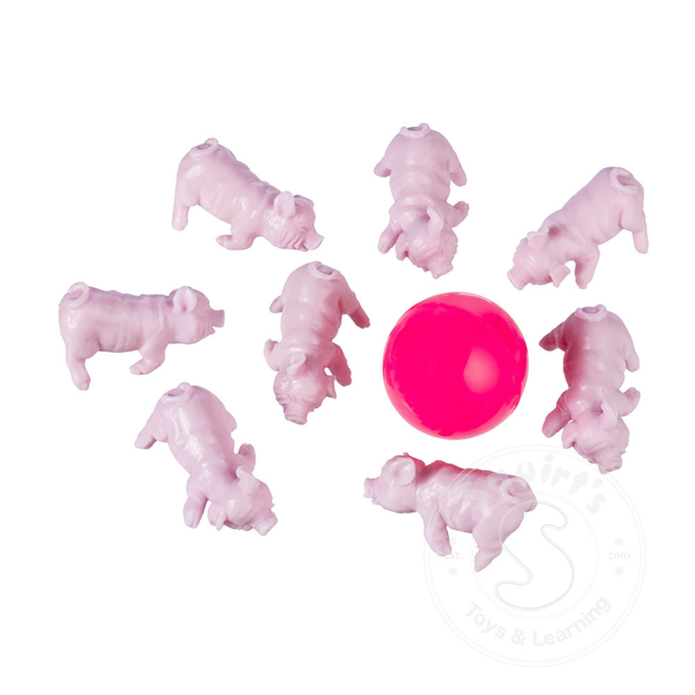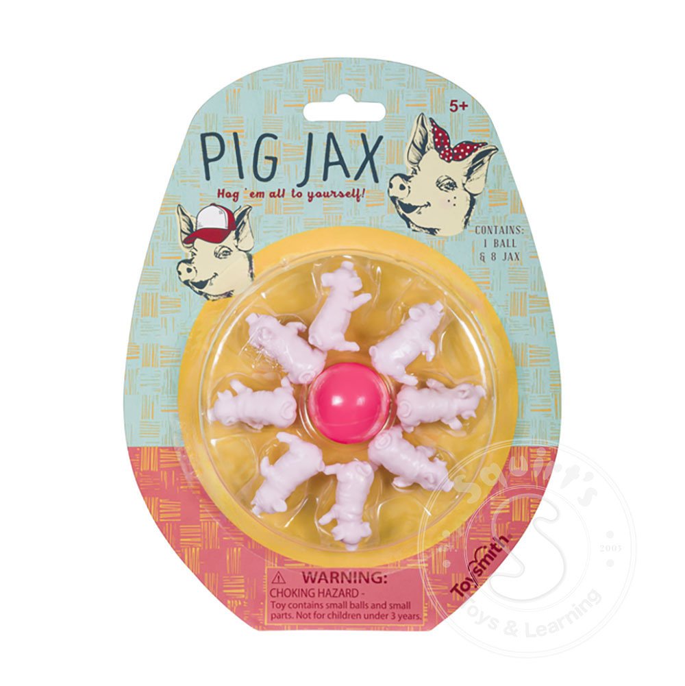 Pig Jax is a refresh of the classic game that includes 1 bouncy ball and 8 piglet jacks inside a peggable blister packet. Each piglet is intricately designed with realistic piggy features and a light pink color. Suitable for indoor or outdoor play on ...