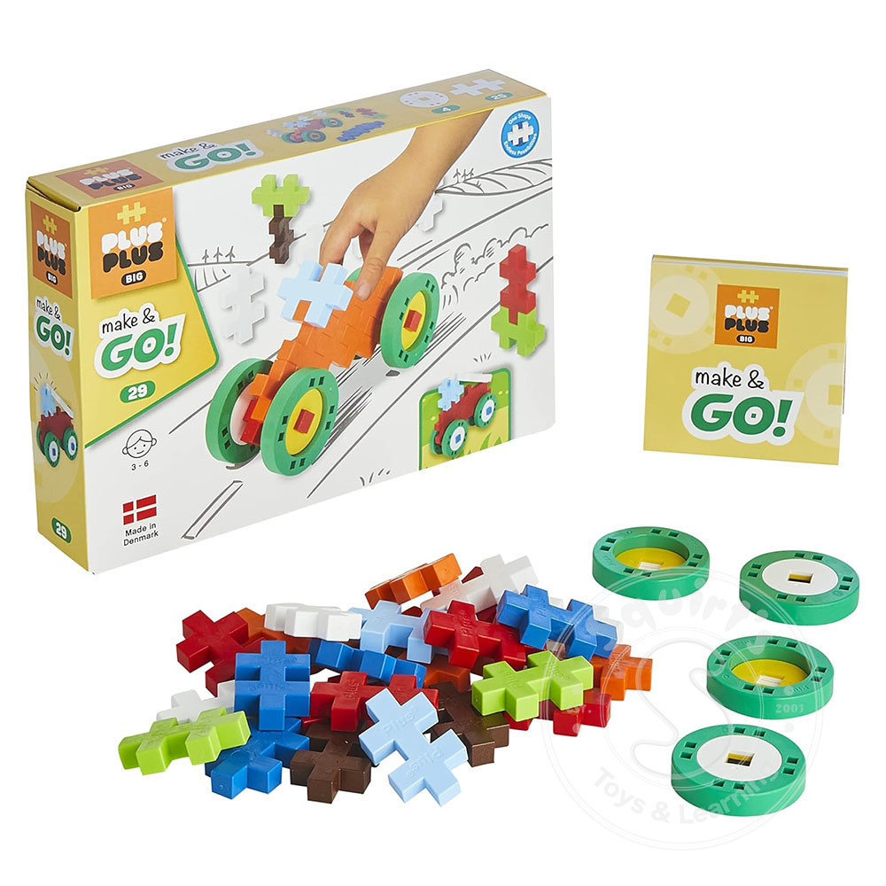 The Plus-Plus BIG Make & GO! 46 set contains everything you need to get started with this unique construction toy. A Guide Book gives step-by step instructions to build your own BIG Make & GO! Vehicles. Set includes 41 BIG pieces, 4 BIG wheels...