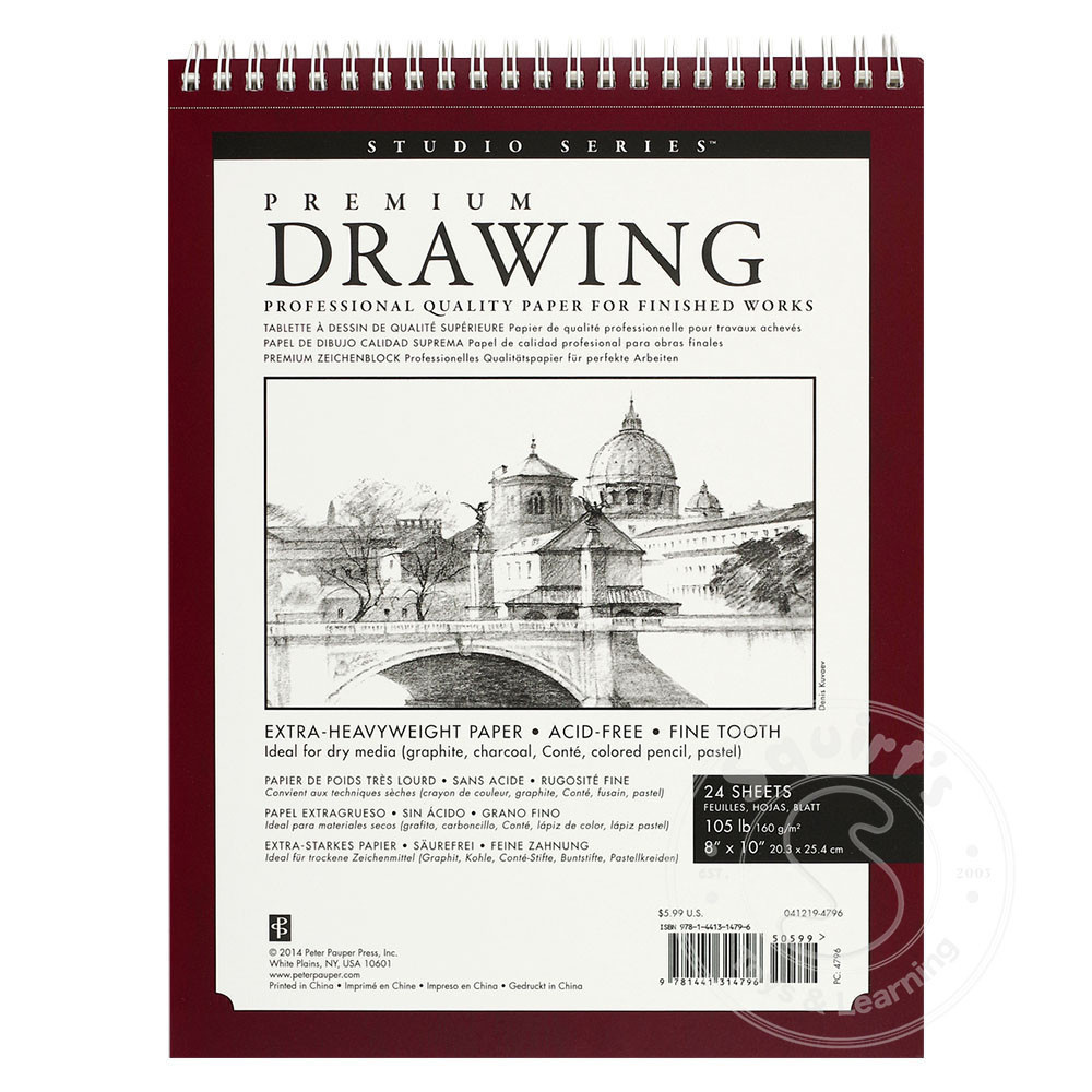 Specifically designed for finished artwork, professional quality Premium Drawing Pad features ultra-heavyweight paper with fine, even tooth. Thick 90 lb / 160 gsm paper is acid-free and of archival quality.